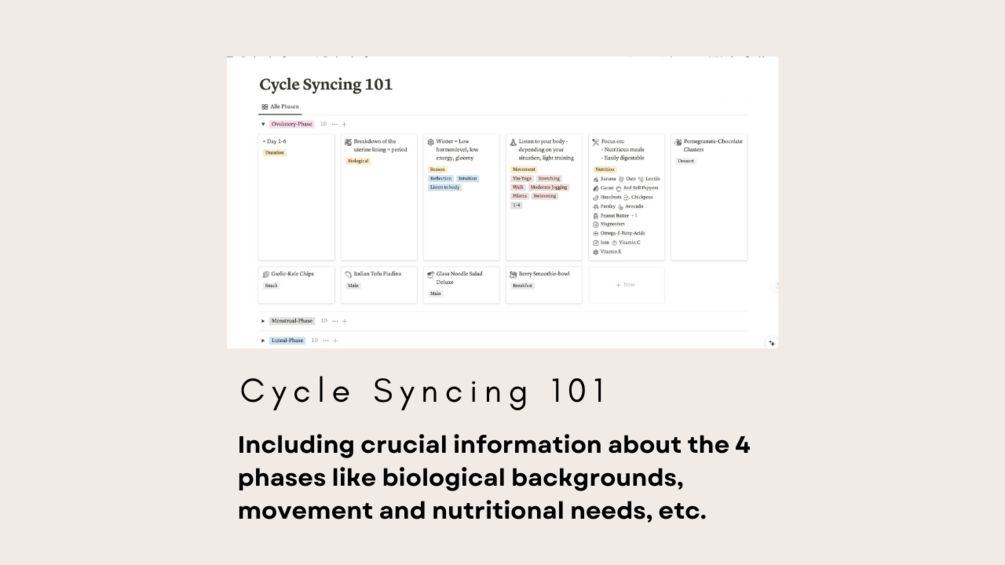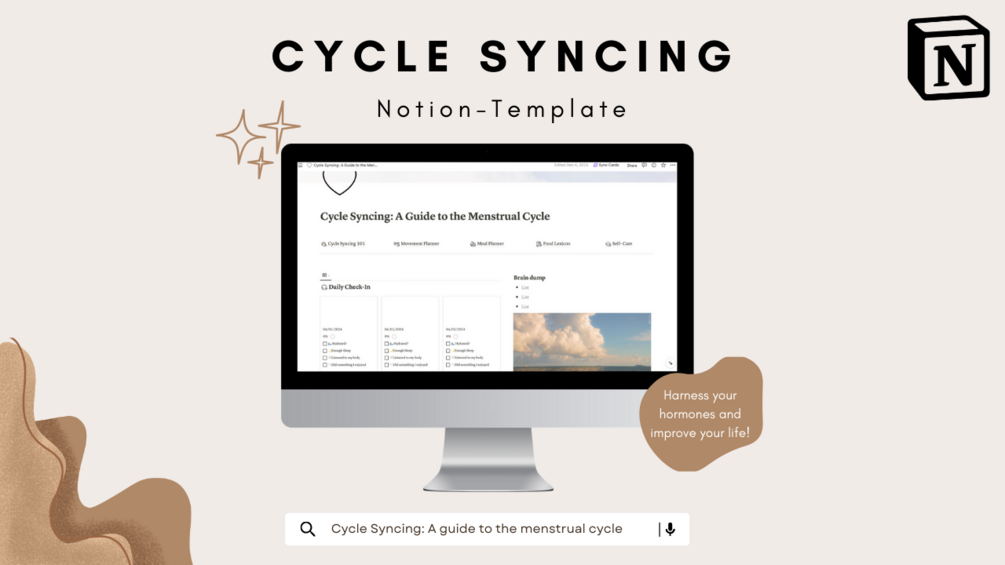 A comprehensive guide to Cycle Syncing and harnessing your hormones. A link to the Notion-Page for you to duplicate.